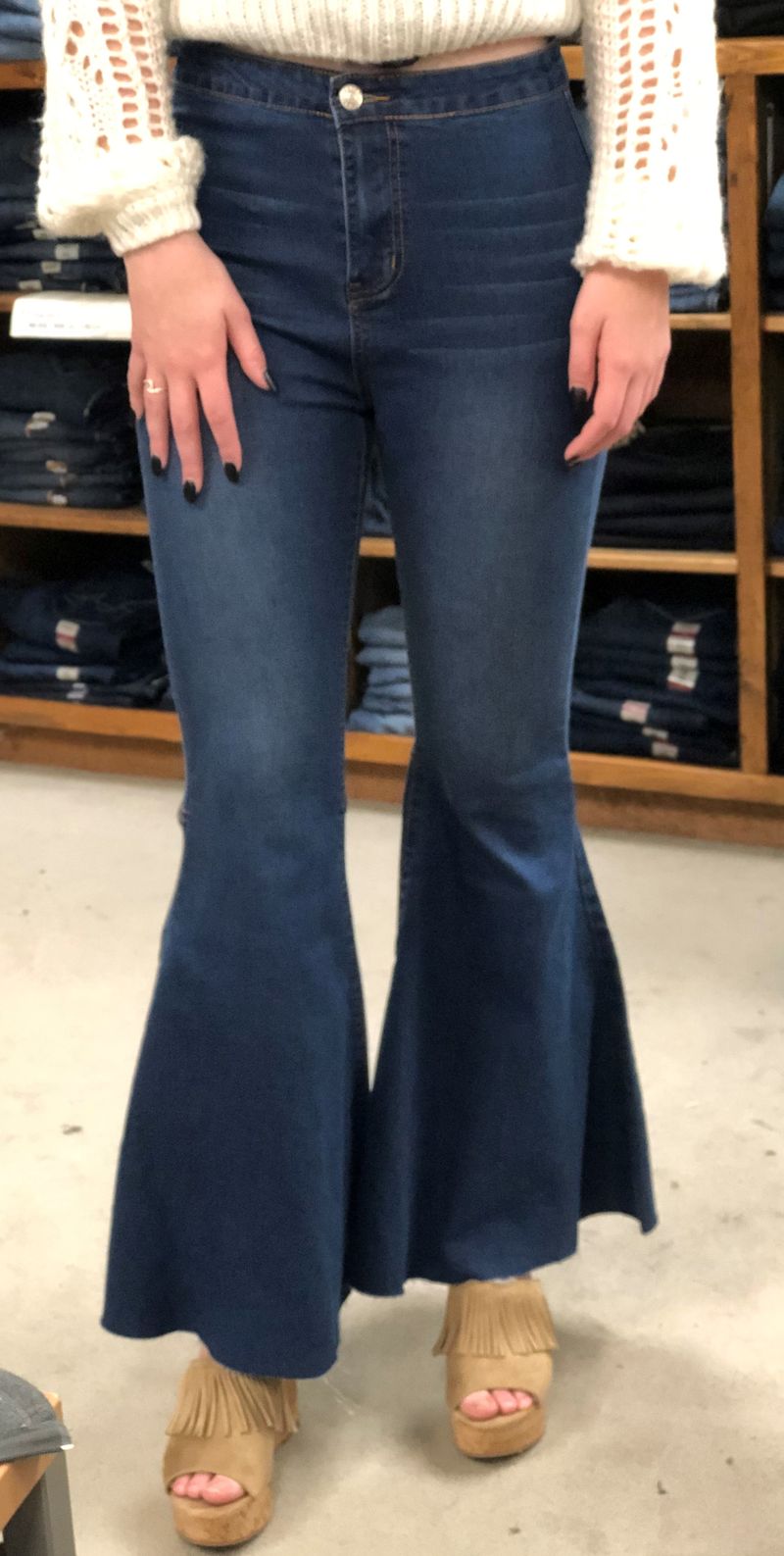 Denim bell bottom flare jeans with frayed hem and high waist. Critic reviews for bell bottom. Great savings & free delivery / collection on many items. See more ideas about bell bottoms, fashion, flare jeans. Bell bottom trousers are perfect for the office if they wear a classic white shirt and short satin vest.